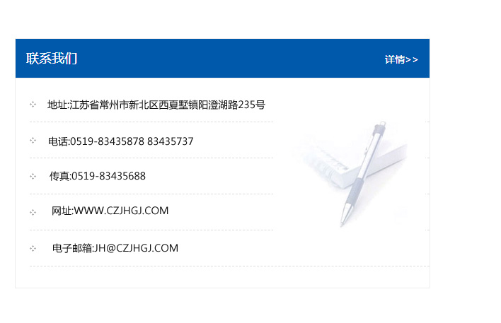 地址:常州市新北區友邦商務大廈1幢16、17層  電話:0519-85101652  傳真:0519-85112595  郵編:213022  網址:www_cz-jiayue_cn.huan-gou.com  郵箱:xiajifengaa@163.com